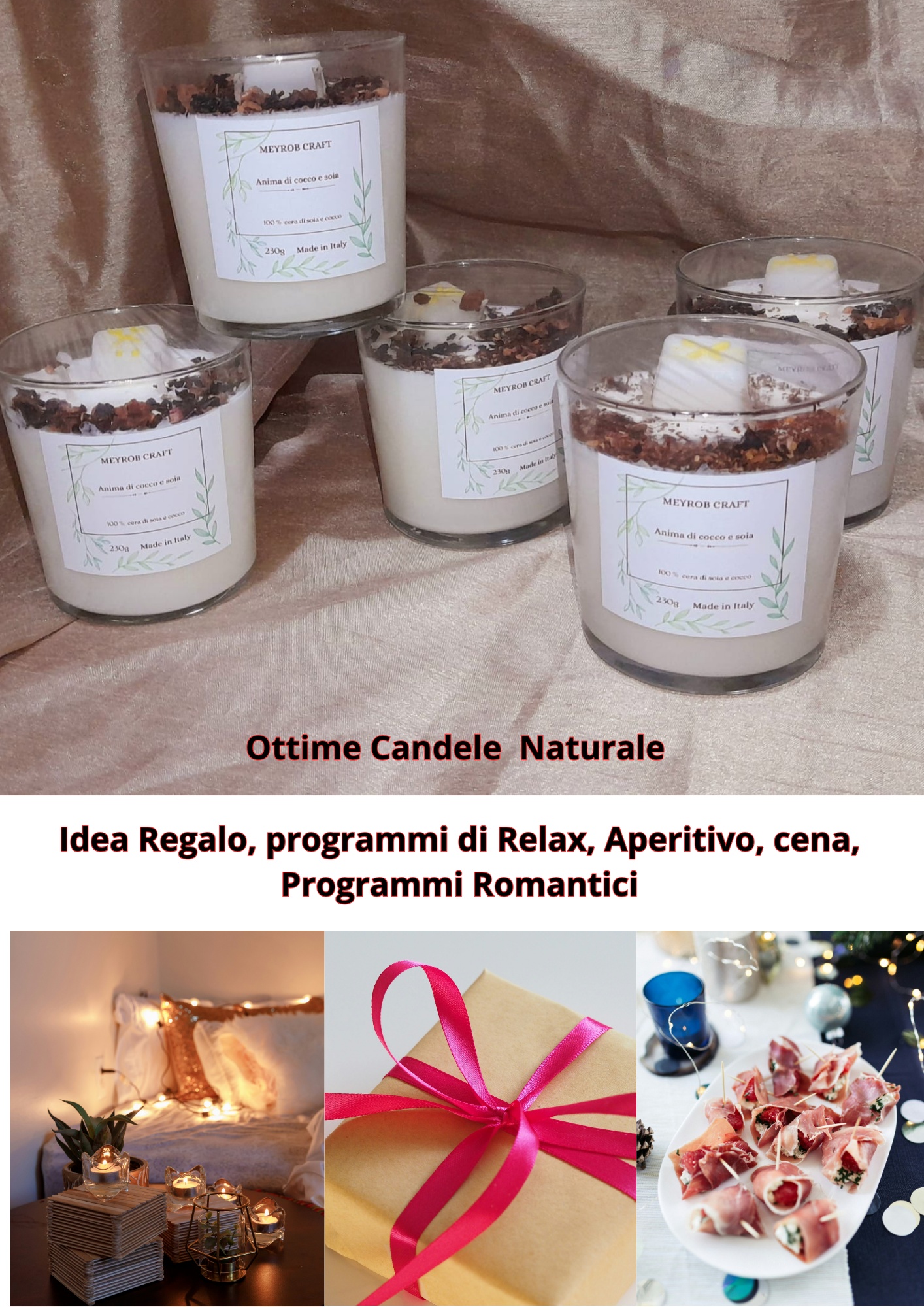 Candela 100% Naturale di cera di soia e cocco fatto interamente a mano, la decorazione e semplice e armoniosa ideale per varie programmi e tempo libero